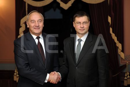 Valsts prezidents Andris Bērziņš (no labās) un Ministru prezidents ...