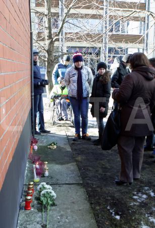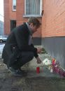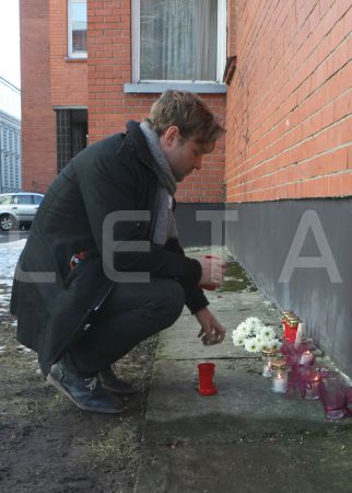 Vīrietis aizdedz sveces pie mužibā aizgājušā dzejnieka un publicista ...