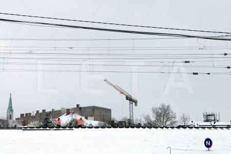 Skats uz dzelzceļu pie Rīgas Starptautiskās autoostas.