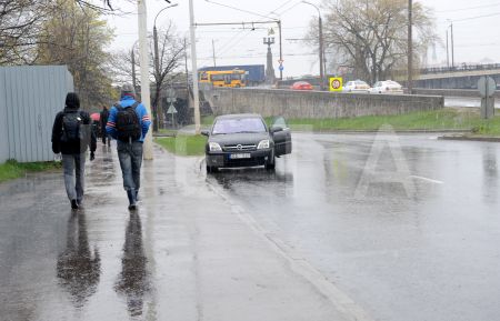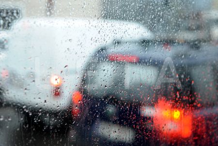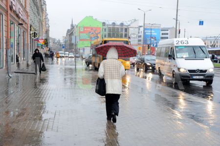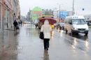 Lietus un slapjš sniegs pilsētā.