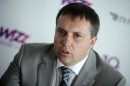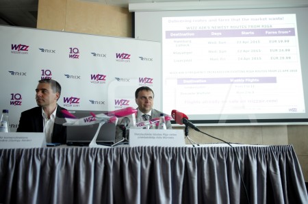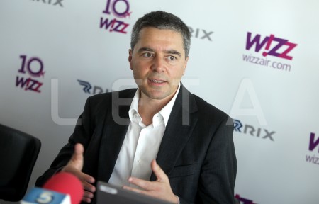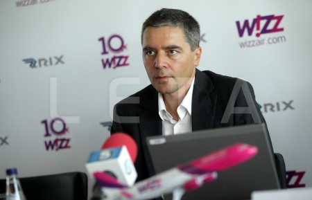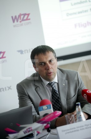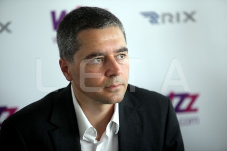 "Wizz Air" komercdirektots Ģerģss Abrāns preses konferencē paziņo par ...