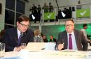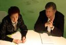 Apvienības ''Vienotība'' pārstāvis Pēteris Vinķelis (no kreisās) un ...