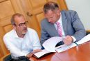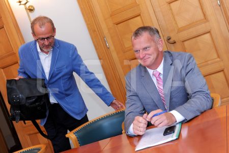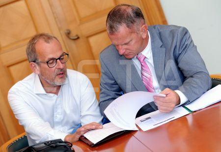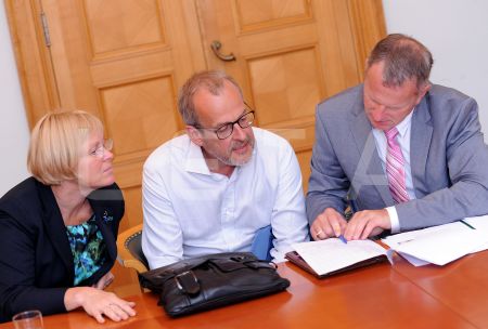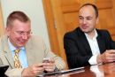 Eiropas Parlamenta deputāts Roberts Zīle (no kreisās) un Saeimas ...
