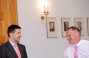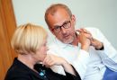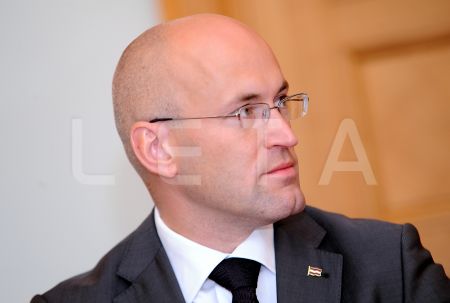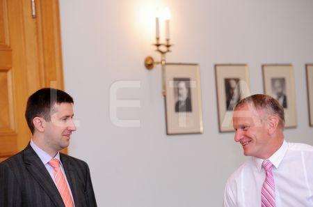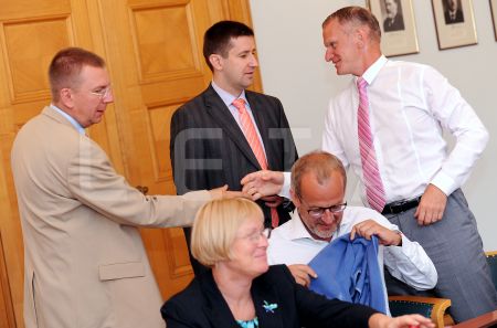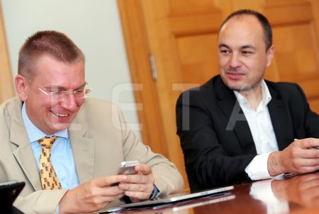 Arlietu ministrs Edgars Rinkēvičs (no kreisās) un Saeimas deputāts ...