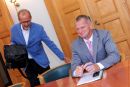 Ekonomikas ministrs Daniels Pavļuts (no kreisās), izglītības un ...
