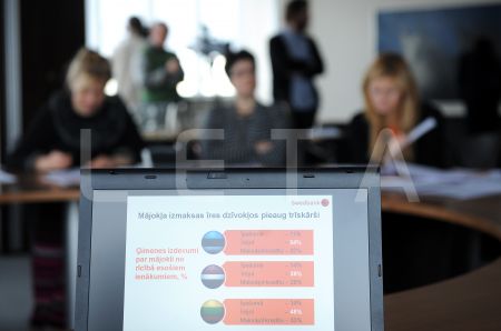 Uzskates līdzekļi preses konferencē, kurā prezentē pētījumu "Cik ...