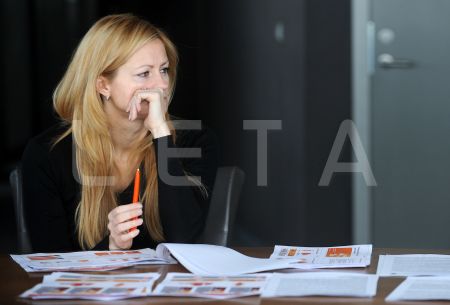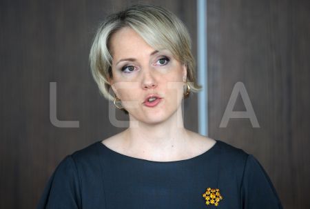 Žurnāliste Ieva Mārtiņa preses konferences laikā, kurā "Swedbank" ...