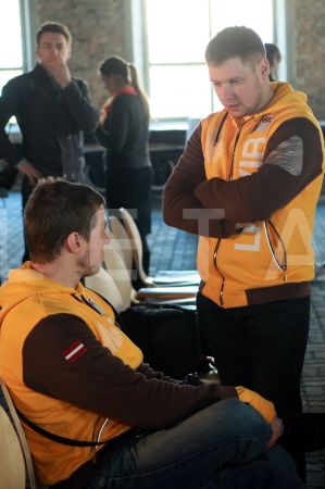 Šorttrekists Roberto Puķītis (no kreisās) un ātrslidotājs Haralds ...