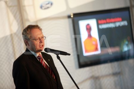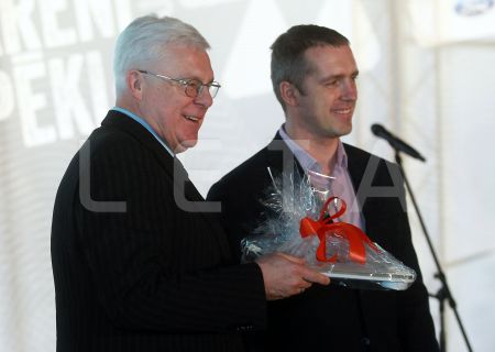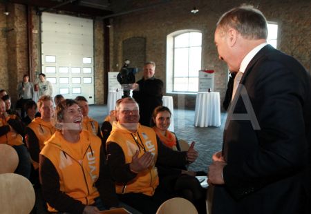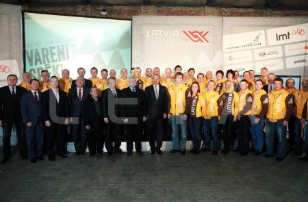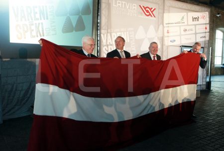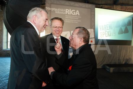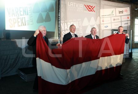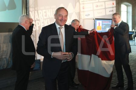 Valsts prezidents Andris Bērziņš (centrā), sponsoru organizāciju ...