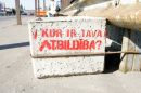 Izžauta veļa pagalmā Sarkandaugavas ielā.