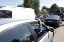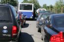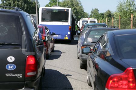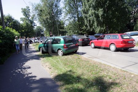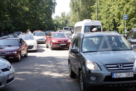 Automašīnu sastrēgums Mangaļsalā, kur cilvēki dodas vērot regati ...