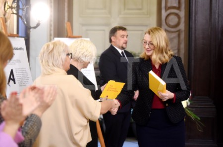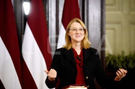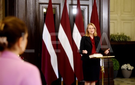 Saeimas priekšsēdētājas biedre Zanda Kalniņa-Lukaševica (no kreisās), ...