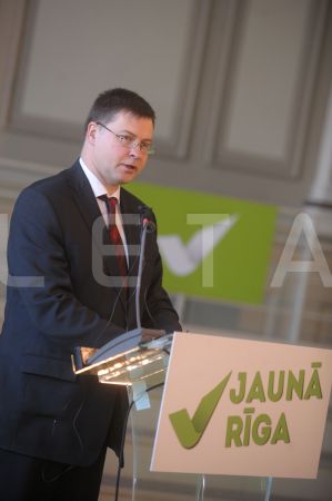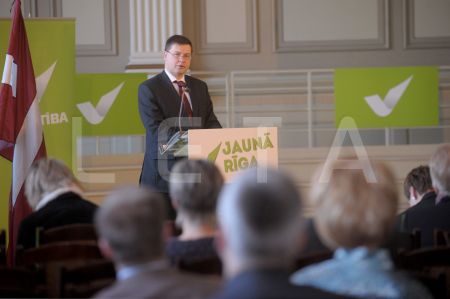 Ministru prezidents Valdis Dombrovskis un partijas 'Vienotība'' Rīgas ...