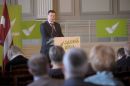 Ministru prezidents Valdis Dombrovskis uzrunā klātesošos partijas ...