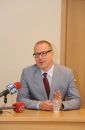 Saeimas deputāts Nikolajs Kabanovs preses konferencē informē par savu ...