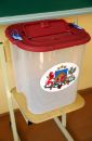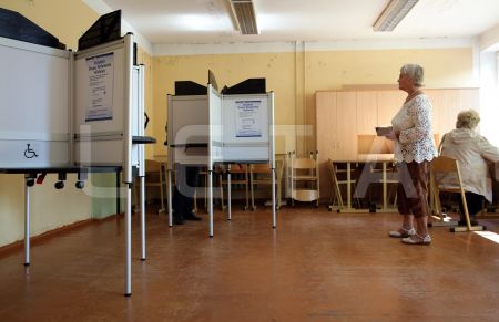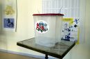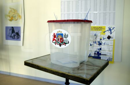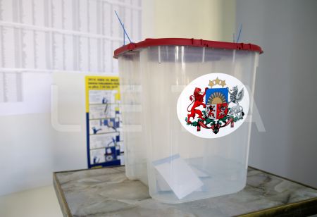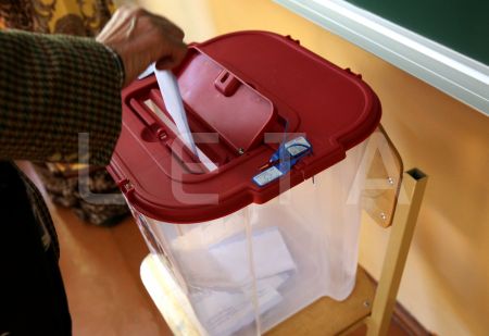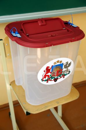 Urna 1.vēlēšanu iecirknī Rīgas Valsts 3. ģimnāzijā, kur notiek ...
