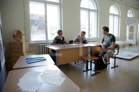 4.vēlēšanu iecirknī Rīgas Centra daiļamatniecības pamatskolā notiek ...