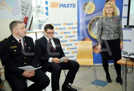"Latvijas Pasta" valdes priekšsēdētājs Arnis Salnājs (no kreisās), ...