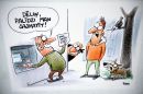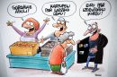Mākslinieka Gata Šļūkas karikatūra "Rūpīgi sargājiet savus bankas ...