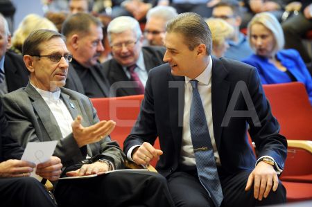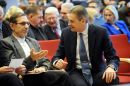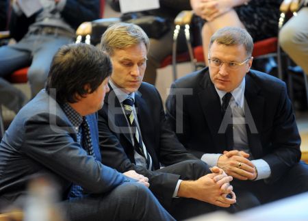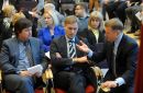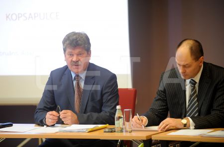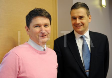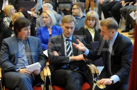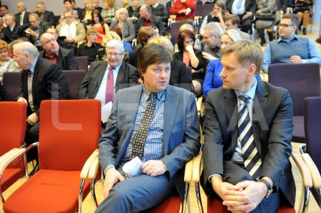 Ekonomistu apvienības 2010" biedrs Mārtiņš Bondars (no labās) ...