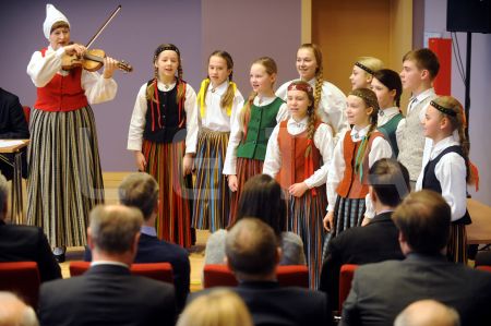 Folkloras kola sniedz muzikālu priekšnesumu partijas "Reģionu ...