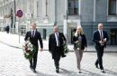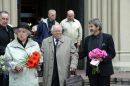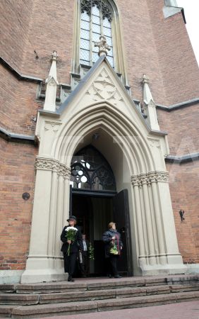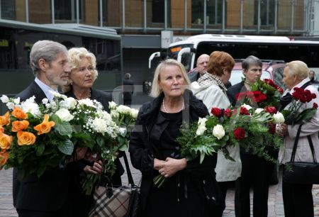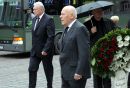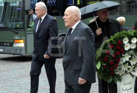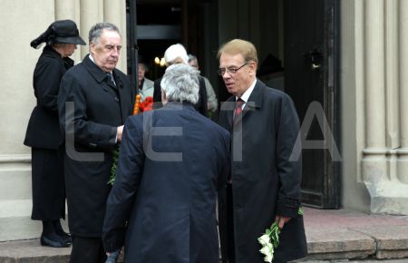 Valsts prezidents Andris Bērziņš (centrā) piedalās bēru ceremonijā no ...