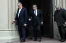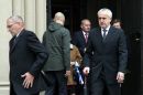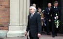 Uzņēmējs Andris Šķēle (priekšplānā) piedalās bēru ceremonijā no ...