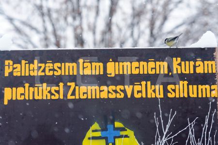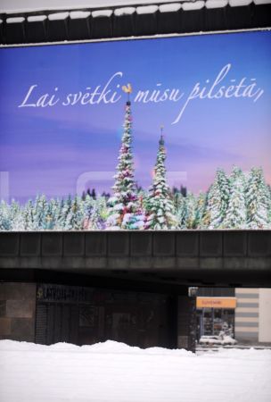Uzraksts Ziemassvētku tirdziņā Esplanādē.