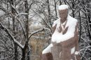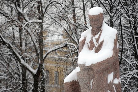 Apsnidzis Raiņa piemineklis Esplanādē.