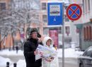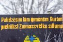 Plakāts ar uzrakstu "Lai svētki mūsu pilsētā! " uz Latvijas ...