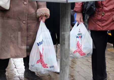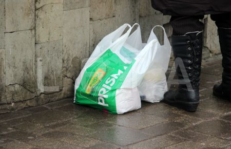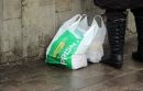 Cilvēki ar "Maxima" iepirkumu maisiņiem.