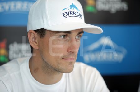 Triatlonists Ingus Siliņš piedalās preses konferencē, kurā informē ...