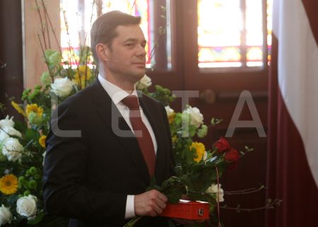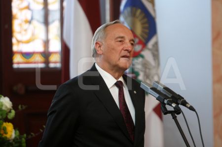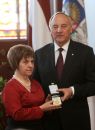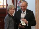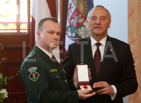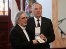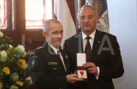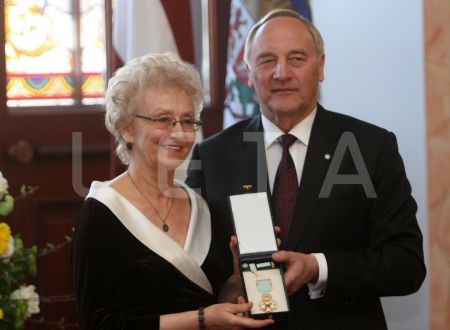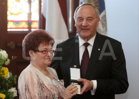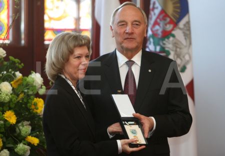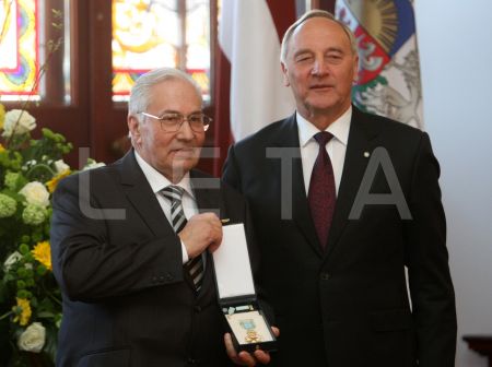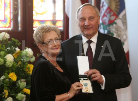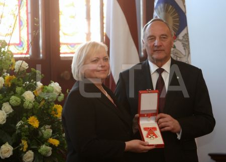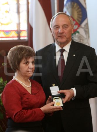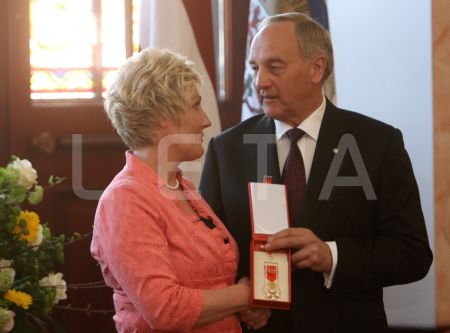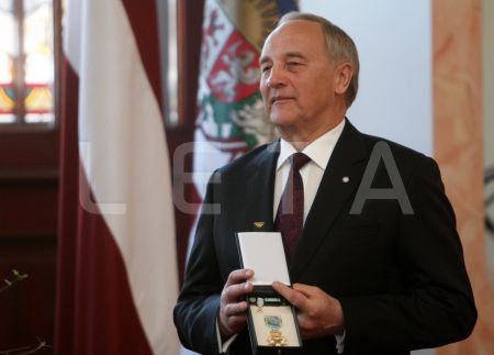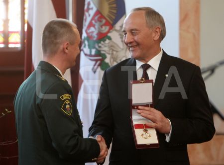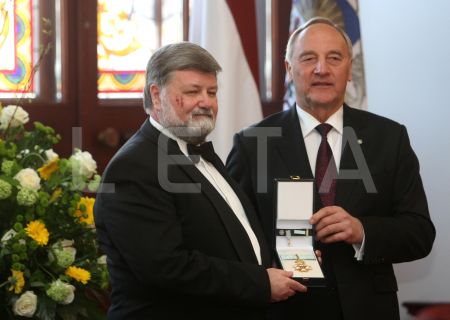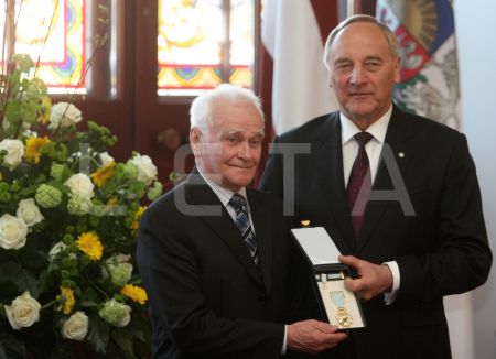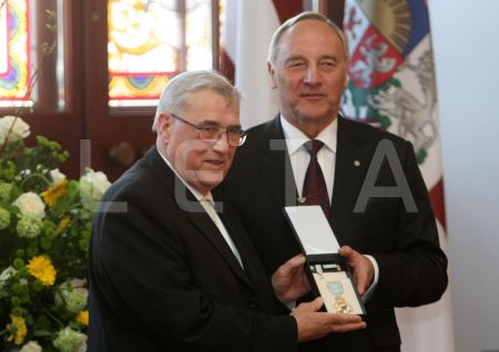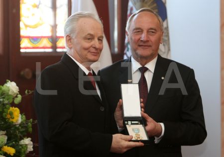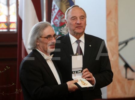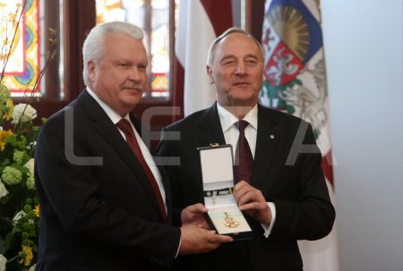 Valsts prezidents Andris Bērziņš pasniedz valsts apbalvojumu un ieceļ ...