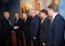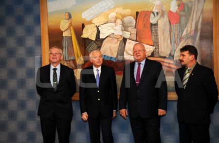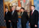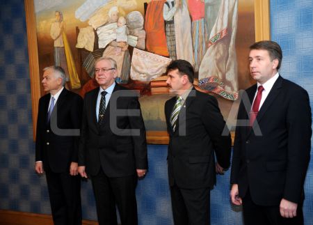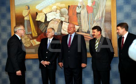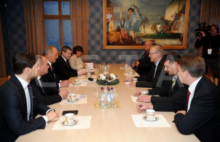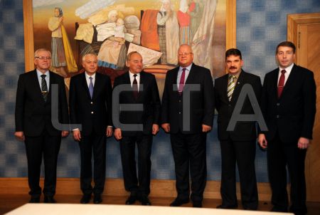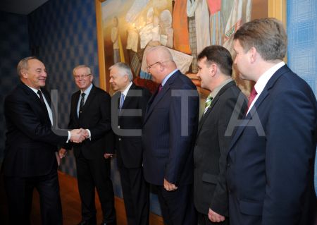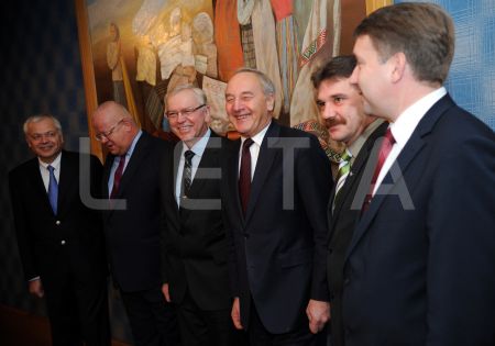 Valsts prezidents Andris Bērziņš (no kreisās) sasveicinās ar Zaļo un ...