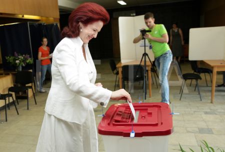 Saeimas priekšsēdētāja Solvita Āboltiņa nodod savu balsi Eiropas ...