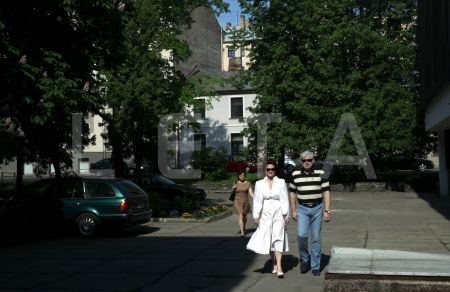 Saeimas priekšsēdētāja Solvita Āboltiņa (no kreisās) ieradusies uz ...
