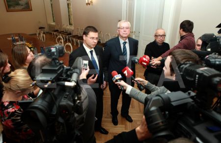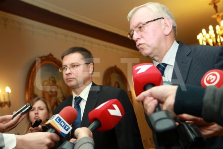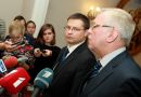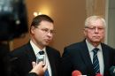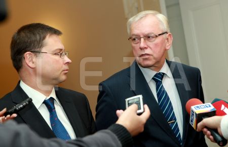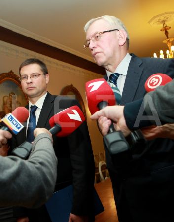 Ministru prezidents Valdis Dombrovskis (no kreisās) un Zaļo un ...