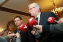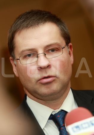 Ministru prezidents Valdis Dombrovskis atbild uz žurnālistu ...