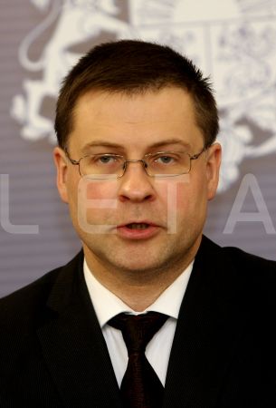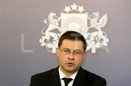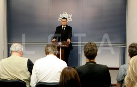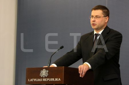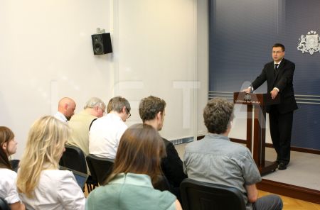Ministru prezidents Valdis Dombrovskis preses konferencē informē par ...