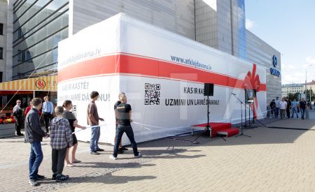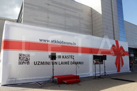 Stacijas laukumā pie "Origo" notiek svinīga dāvanas atvēršanas ...