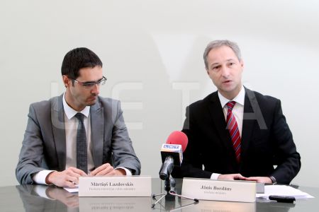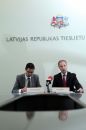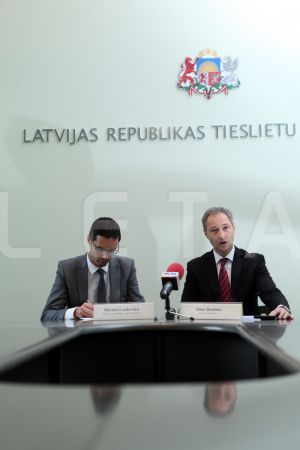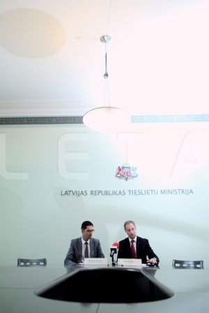 Tieslietu ministrs Jānis Bordāns (no labās) un Tieslietu ministrijas ...