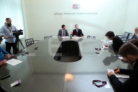 Tieslietu ministrs Jānis Bordāns piedalās preses konferencē, kurā ...