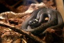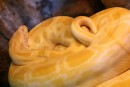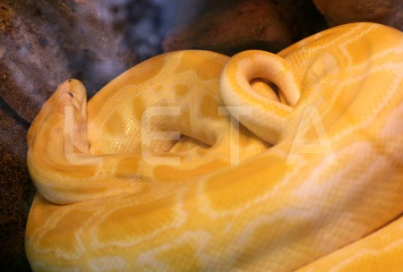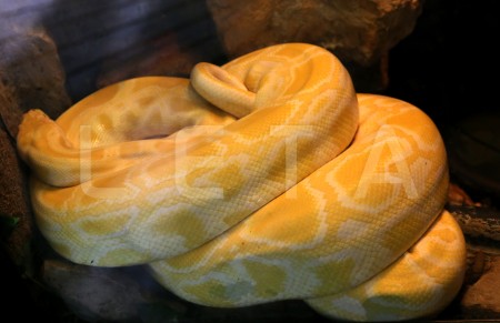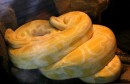 Albīnais tīģerpitons Rīgas Zooloģiskajā dārzā.
