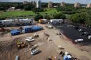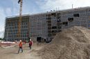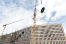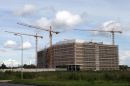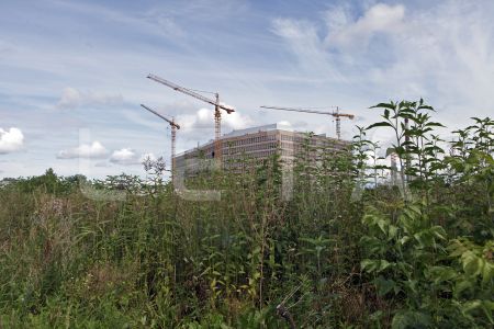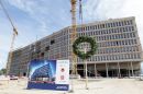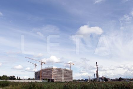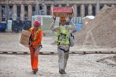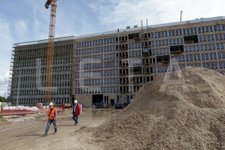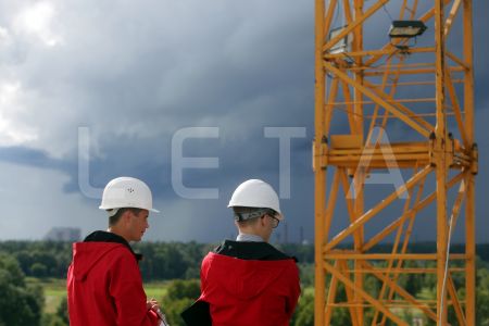 Strādnieki lietū Valsts ieņēmumu dienesta jaunā administratīvo ēku ...
