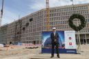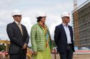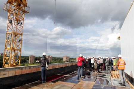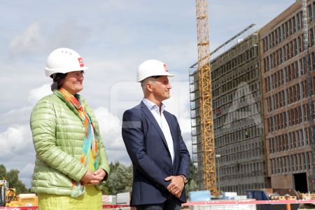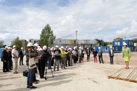 Cilvēki ķiverēs Valsts ieņēmumu dienesta jaunā administratīvo ēku ...