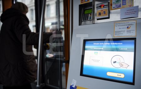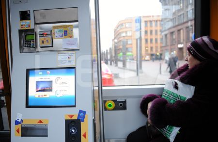 Sieviete un SIA "Rīgas satiksme" pašapkalpošanās biļešu automāts ...