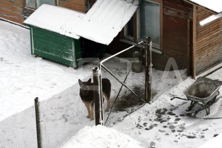 Suns privātmājas pagalmā Ulmaņa gatvē.