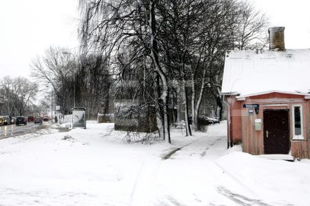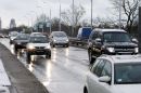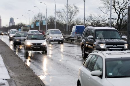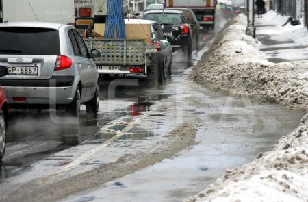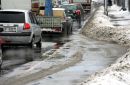 Transports un nenovākts sniegs Ulmaņa gatvē.