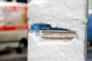 Apsnigusi sabiedriskā transporta saraksta plāksne.