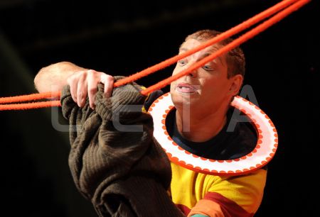 Klauns "Rocky" uzstājas preses konferences laikā, kurā iepazīstina ar ...